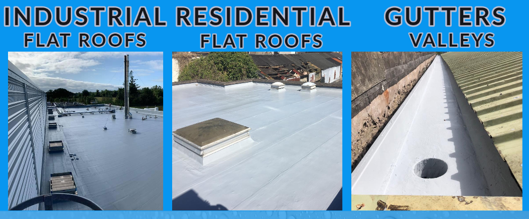 Pictured to the left are a number of large flat roofs that have been waterproofed succesfully with Owl Lava 20 Waterproofing System.